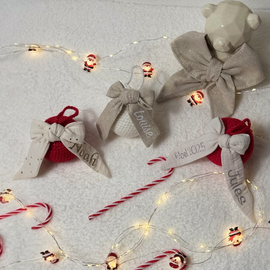 - Chaque boule est crochetée à la main dans mon atelier, avec tout l’amour et la patience que demande la magie de Noël. Personnalisée au niveau du nœud et livrée dans sa boule transparente à suspendre, c’est un souvenir unique pour le premier Noël de bébé ou un cadeau plein d’émotion. 🎁