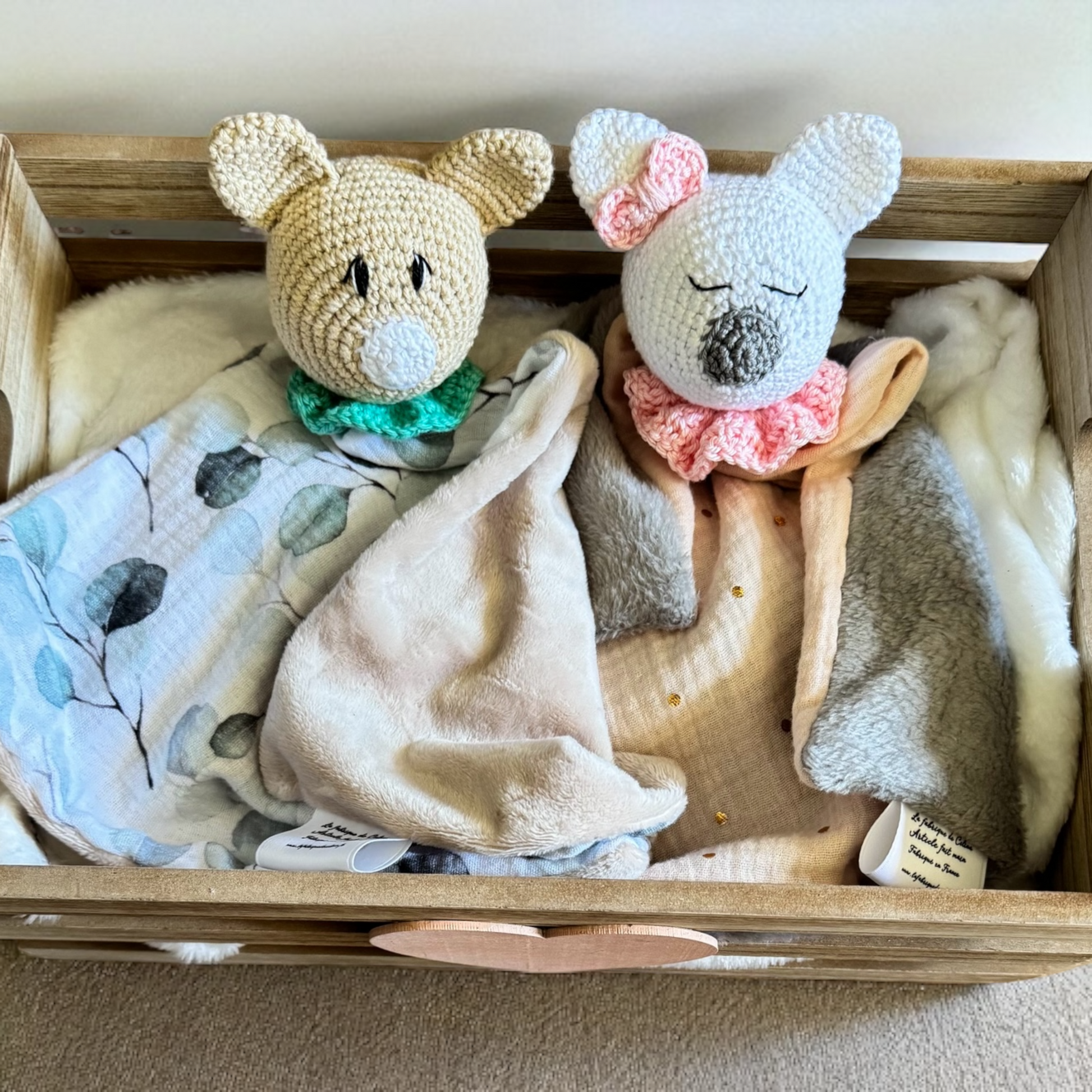 - Fait main avec amour dans mon atelier en Haute Vienne. Conforme aux normes CE, adapté dès la naissance.